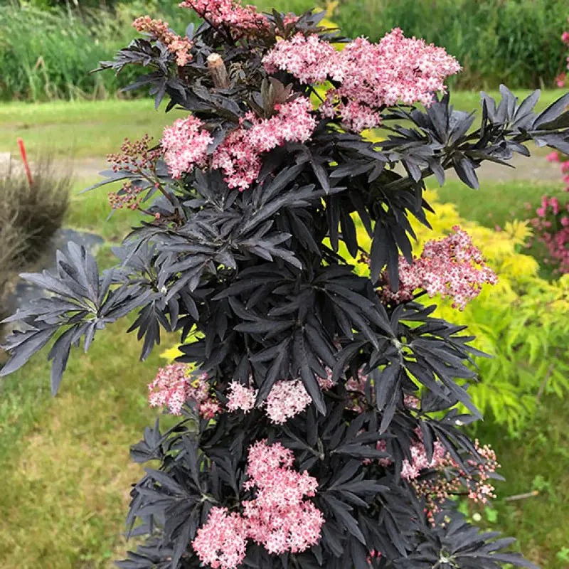 Узкий, бысторастущий, прямостоячий кустарник высотой 200 см и шириной 100 см. Листва черная, темно-фиолетовая перистая, украшает стебли, а пучки крошечных нежно-розовых цветков раскрываются, создавая контраст с другими растениями летом. Сохраняет форму без обрезки. Местоположение солнце или полутень.