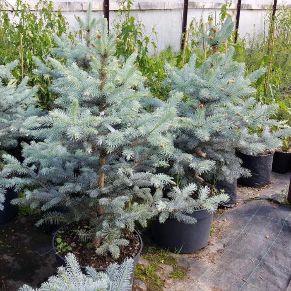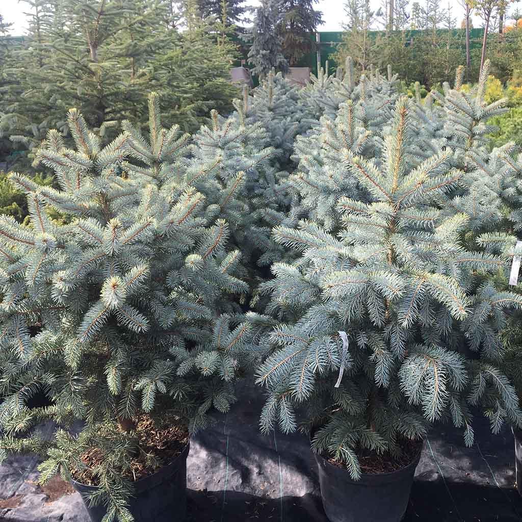 Дерево высокорослое, достигает 15 м в высоту и около 8 м в ширину. Обладает ионизирующими воздух свойствами. Ежегодный прирост составляет 15 см в ширину и до 30 см в высоту. Крупномер колючая Glauca покрыт серебристо-голубой, жесткой хвоей (около 2,5 см). Ель ценится благодаря необычной окраске и красивой форме кроны. Может использоваться в одиночных посадках, для формирования живой изгороди. Саженцы светолюбивы, морозостойкие, не требовательны к почве, но любят обильный полив.