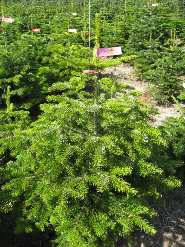 Ель датская (Пихта Нордмана) – самое популярное в Европе рождественское дерево. Эта красивая конусовидная, с раскидистыми и очень пушистыми ветвями пихта имеет длинную, глянцевую неколючую хвою. Мягкие иголочки от ярко-зеленого до темно-зеленого цвета идут от самого ствола и долго не осыпаются, что поможет долго поддерживать праздничное настроение в доме. Следует отметить, что ель датская пахнет очень слабо, что делает её привлекательной для людей с очень чувствительным обонянием.