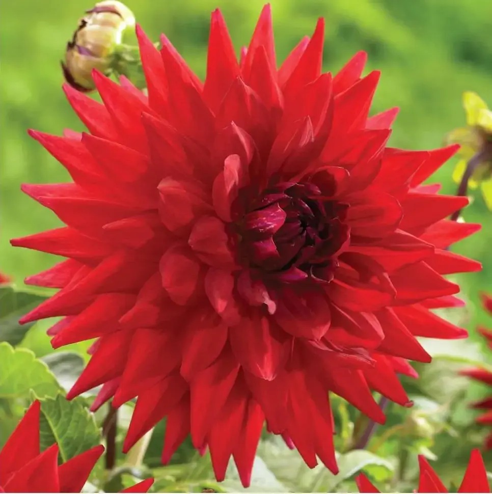 - Характеристики ОГРОМНЫЙ огненно-красный, лепестки широкие с острыми кончиками, диаметр цветка 22 см