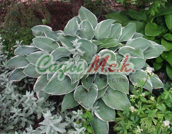 Хоста Аlvаtinе Tауlоr – крупное декоративное многолетнее растение, которое быстро разрастается и образует красивые и компактные кусты. Отличается многолетник своими большими голубовато-зелеными листами с ровной, широкой каймой. В зависимости от возраста, она бывает то зеленовато-желтая, то даже светло-желтая. Листовые пластины растения имеют овальную форму, сердцевидное основание и острые кончики. На их морщинистой поверхности хорошо видны ярко выраженные рельефные жилки, образующие узорчатый рисунок. Зацветает многолетник в июне, выбрасывая сизовато-зеленые стебли с белыми цветками. Этот гибридный сорт в садовом дизайне может играть самые разные роли: украшать тенистые уголки сада, очерчивать края садовых дорожек или выступать солистом на солнечной лужайке