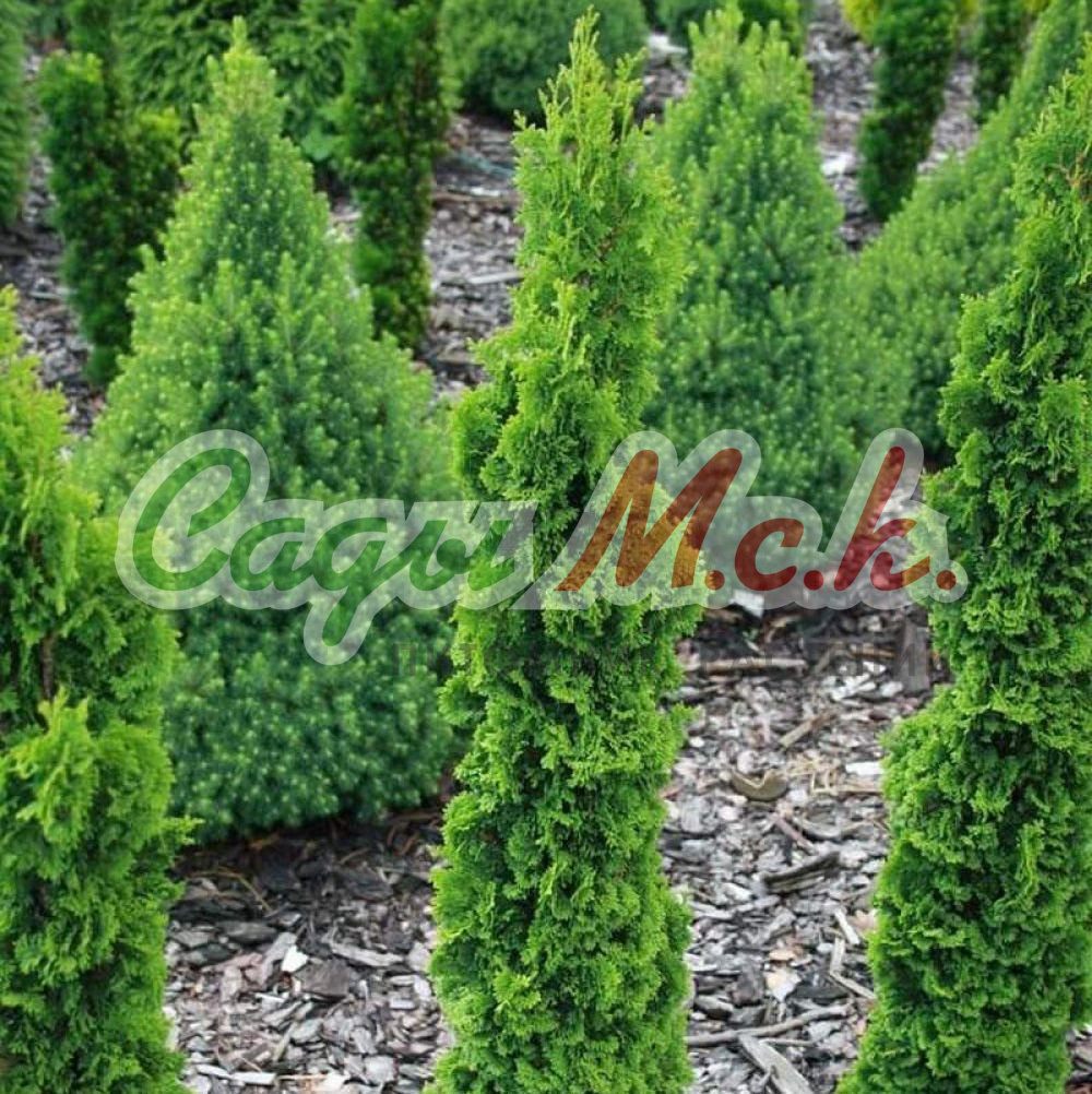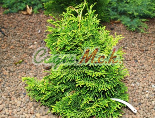 Узкая острая желто-хвойная туя высотой до 10 м. и диаметром кроны до 1,8 м. Дерево растет довольно быстро, ежегодно прибавляя до 30 см высоты. Имеет прямой, ровный и стройный ствол, к которому плотно прижимаются скелетные ветви, образуя красивую устремленную вверх общую форму дерева.Скелетные ветки короткие и мощные, тесно прижимаются друг к другу, а на концах начинают сильно ветвиться. За счет такого строение крона выглядит очень густой и плотной, формируется симметрично. Хвоя густая, яркая, золотисто-жёлтая, не подгорает на солнце, зимой приобретает бронзовый оттенок. Хорошо себя чувствует как на солнце, так и в полутени. На солнце не горит.<br>