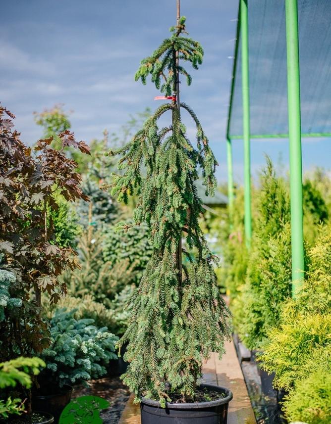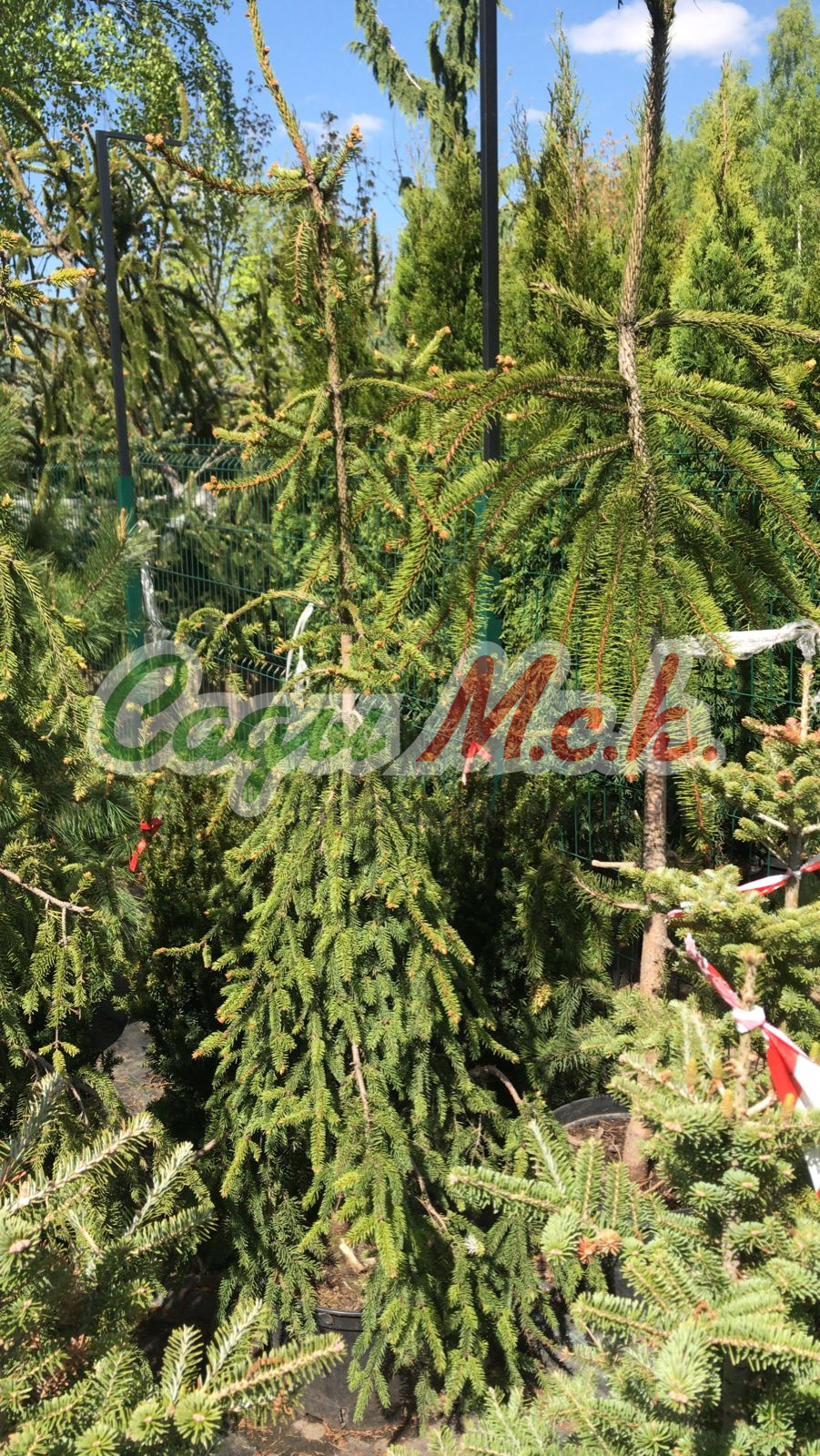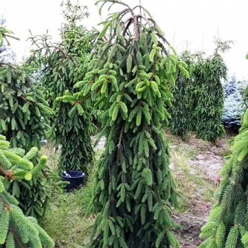 В высоту деревце достигает 8 м, крона узкая, развивается неравномерно, обычно ее диаметр не превышает 3 м. Ежегодно ель увеличивается на 10 см в высоту и 5 см в ширину. Главная особенность крупномера обыкновенная Inversa – ниспадающие, обвисшие ветки и заваливающаяся верхушка. Хвоя блестящая, толстая, темно-зеленого оттенка. Саженцы хорошо переносят сильные морозы, не терпят засухи, но и к переувлажнению относятся негативно. Ель светолюбива, но приживается и в полутени.